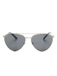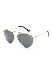 crystal-embellished pilot-frame sunglasses Highlights - Gold-tone - Metal/acetate - Polished finish - Crystal embellishment - Pilot frame - Uv-protective grey-tinted lenses - Lens decal - Double bridge - Nose pads - Logo-engraved arm with curved tips - Gold-tone hardware - These glasses come with a protective case. Made in Italy Composition Acetate 100%, Acrylic 100%, Metal 100% SIZE & FIT Measurement Arm Length 5.51 in(14 cm) Bridge Width 0.59 in(1.5 cm) Lens Diameter 2.36 in(6 cm) Total Width 5.7 in(14.5 cm)