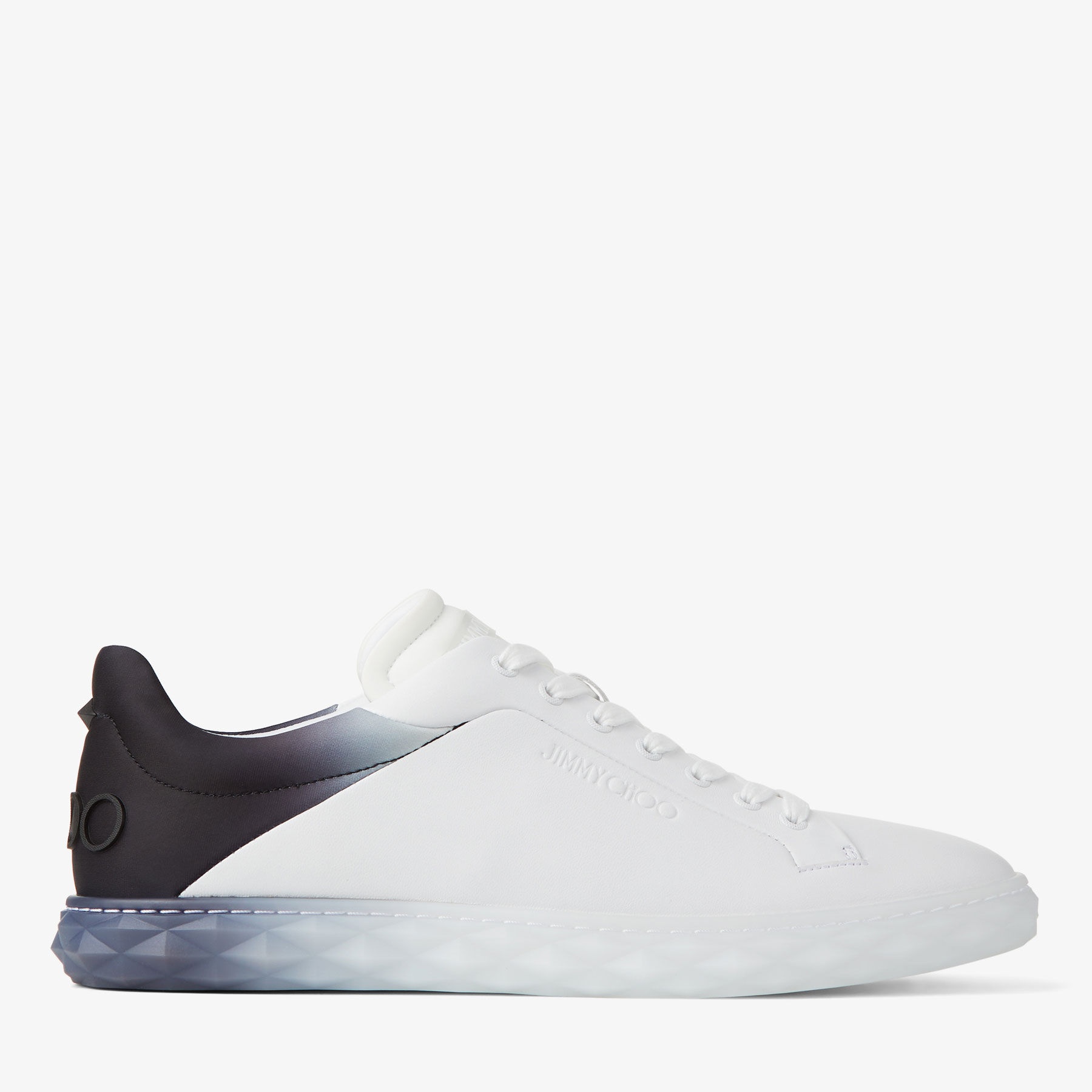 Details, Care & Fit Item No. DIAMONDLIGHTMIIBFA Crafted with a mixed leather upper, the Diamond Light takes trainers to new heights. Its sole is unique - moulded to our signature multi-faceted Diamond motif, composed of three parts for added durability. This futuristic design encases and elevates the trainer to give added height. A mix of materials, including light and flexible PU, form the core; giving it effortless flexibility. These trainers are a perfect blend of innovation, style, and comfort, bringing a unique upgrade to your wardrobe. Italian sizing. Fits true to size. - Mixed leather and lyrca - Diamond motif - Low-top - Dégradé design - Rubber outsole - EVA innersole - Round toe - Jimmy Choo embossing