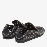 Details, Care & Fit A modern take on the classic smoking slipper, the Eliot Slipper is crafted in metallic nappa leather and punctuated with approximately 272 polished silver eyelets. Set on a flat sole with a non-slip finish, it features a squared toe, notched vamp and smooth leather lining with soft padding that naturally moulds to the foot, creating a pillowy fit. A collapsible back provides added versatility and comfort. - Metallic Nappa Leather - Silver polished metal eyelets - Square toe - Leather lined - Leather sole - Notched vamp - Non-slip sole - Soft foam padding - Collapsible back - Made in Italy - By purchasing this product, you are supporting sustainable leather manufacturing through the Leather Working Group