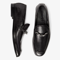 Black Buffalo Leather Loafers with Chain Embellishment