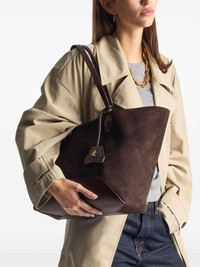 medium Diamond tote bag Highlights - Brown - Calf suede/calf leather - Panelled design - Open top - Two top handles - Adjustable shoulder strap - Logo print to the front - Leather tag - Gold-tone logo plaque - Main compartment - Internal zip-fastening pocket - Wardrobe icon Made in Italy Composition Outer: Calf Leather 100%, Calf Suede 100% SIZE & FIT Measurement DEPTH 5.51 in(14 cm) HANDLE 10.23 in(26 cm) HEIGHT 11.02 in(28 cm) WIDTH 20.86 in(53 cm)