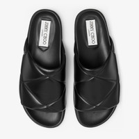 Details, Care & Fit A modern essential for off-duty days, the Sav slide is crafted in glossy nappa leather with a bold, quilted strap that brings sculptural texture to a casual silhouette. Designed for comfort with a smooth footbed and sleek profile, the Sav is polished enough to go beyond the poolside. - Quilted Nappa leather - Jimmy Choo logo - Leather footbed - Made in Italy