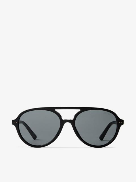 Details, Care & Fit The Vira updates the classic aviator with a modern, soflty curved frame. Crafted from black acetate with tonal lenses and sculpted temples, the design is finished with the Jimmy Choo logo for a signature touch. - Acetate containing 27% recycled content - Bio-nylon lenses - Grey shaded lenses - Aviator frame - Jimmy Choo logo - 100% UVA and UVB protection - Presented with a Jimmy Choo case and cleaning pouch - Lens width: 5.5cm - Bridge length: 1.7cm - Temple length: 14cm - Made in Italy