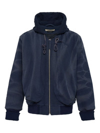 bleached-effect jacket Highlights - Navy blue - Sun-bleached effect - Raw-cut edges - Zip fastening - Drawstring hood - Ribbed cuffs Imported Composition Outer: Cotton 100% Lining: Recycled Polyester 100%, Polyester 90%, Wool 10% Washing instructions Read Manufacturer Guidelines
