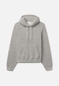 "Pullover hoodie with a relaxed, subtly cropped silhouette. Designed with a drawstring hood featuring John Elliott–branded metal tips, a kangaroo pocket at the waist, and ribbed cuffs and hem. Finished with tonal stitching throughout. Made in Japan. Boucle alpaca–wool blend fabric offers a distinctly plush hand and elevated texture, delivering warmth, structure, and softness in equal measure. Self: 11% Alpaca / 43% Wool / 11% Nylon / 35% Cotton.Rib: 80% Wool / 20% Alpaca." FABRIC & FIT Fits true to size, take your normal size. CARE GUIDE Dry Clean Only