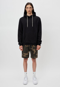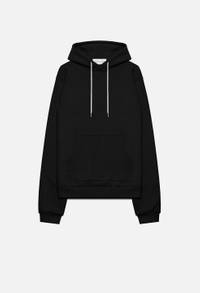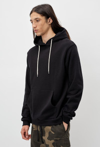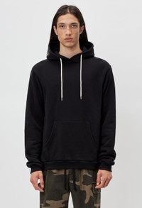 Relaxed fit hoodie with a dropped shoulder fit in custom knit French terry. Kangaroo pockets at the waist, drawstring closure at the hood. Rib knit waist and cuffs. Made in Los Angeles. 100% Cotton. FABRIC & FIT Fits true to size, take your normal size. Model is 6'2" 160 lbs and wears a size 2 / Medium. CARE GUIDE Machine wash cold, gentle cycle. Hang to dry.