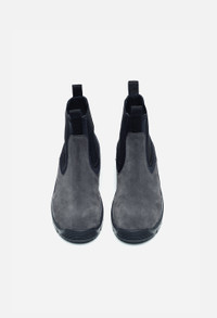 Ankle-high Chelsea Boots in Shark Suede. Calf leather upper. Neoprene liner at elastic boot cuff. Nylon pull tabs. Custom injection-molded performance outdoor hiking sole. Green branded insole. We approached footwear as we do any category - by solving our own problems. Brand codes, that we’ve crafted over the last nine years, are embedded in the design language, like layering and transparency. The entire range is made in Northern Italy, near Florence. We use beautiful materials that will last. FABRIC & FIT This style is offered in whole European sizes and runs a half size large. If you take a half size, we suggest to size down to your closest whole size.