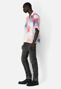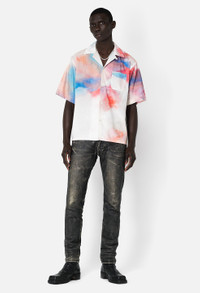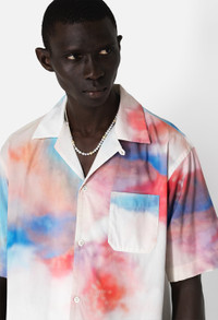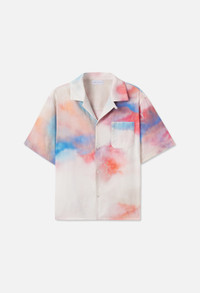 Graphic print camp shirt in newly developed cotton / rayon blend fabric that's knit for a soft, smooth hand. This shirt features a button placket, chest pocket, and point collar. The relaxed, easy silhouette is designed to elevate any fit, whether paired with semi-formal trousers or more casual shorts. Fits boxy by design. If you prefer a slimmer fit, it's possible to size down. Spring / Summer 23, “Leap of Faith,” has literal and figurative meanings. The literal is to summon the courage in a tough moment, to go for it. For some that means going to a place that’s exciting but also a bit foreign. Whether that’s a new job, new school, or even a new country. The “Birds Eye" print, which was inspired by a satellite image, signifies that moment of reflection, gazing out the window of an airplane, watching the ground interact with organic surroundings, and finding beauty in the journey when you’ve decided to take the “Leap of Faith.” 57% Cotton 43% Rayon. FABRIC & FIT Fits boxy by design. If you prefer a slimmer fit, it's possible to size down. Model is 6'2" 160 lbs and wears a size 2 / Medium. CARE GUIDE Machine Wash Cold/ Wash With Like Colors/ Do Not Bleach/ Iron Low Temp/ Do Not Tumble Dry / Dry Clean