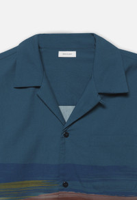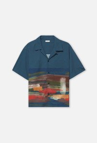 Custom 'Brushstrokes' print camp shirt, crafted from a cotton-rayon blend for exceptional drape and a soft hand-feel. Features a button placket, chest pocket, and classic point collar. The relaxed, effortless silhouette seamlessly elevates any look, whether styled with semi-formal trousers or casual shorts. Fits boxy by design. If you prefer a slimmer fit, it's possible to size down. Please refer to our size guides for more information. 50% Rayon / 50% Cotton. FABRIC & FIT Fits true to size, take your normal size. CARE GUIDE Machine Wash Cold/ Wash With Like Colors/ Do Not Bleach/ Iron Low Temp/ Do Not Tumble Dry /Dry Clean