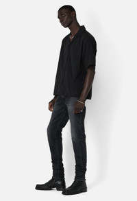 Camp Shirt in newly developed cotton / rayon blend fabric that's knit for a soft, smooth hand. This shirt features a button placket, chest pocket, and point collar. The relaxed, easy silhouette is designed to elevate any fit, whether paired with semi-formal trousers or more casual shorts. Fits boxy by design. If you prefer a slimmer fit, it's possible to size down. Cotton 50% / Rayon 50% FABRIC & FIT Fits boxy by design. If you prefer a slimmer fit, it's possible to size down. Model is 6'2" 160 lbs and wears a size 2 / Medium. CARE GUIDE Machine Wash Cold, Wash With Like Colors, Do Not Bleach, Do Not Iron, Do Not Tumble Dry