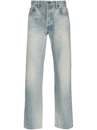 indigo blue cotton washed denim whiskering effect at the thighs low-rise belt loops button fly fastening classic five pockets tapered leg slim cut Size & Fit Model Measurements: Height: 1.88 m Bust/Chest: 95.0 cm Hips: 92.0 cm Waist: 72.0 cm Model wears size 32 Fabric and Care Designer Style ID: G371E87100L Designer Colour: COAST Composition: Cotton 100% Washing instructions: Machine Wash Made in Japan