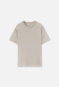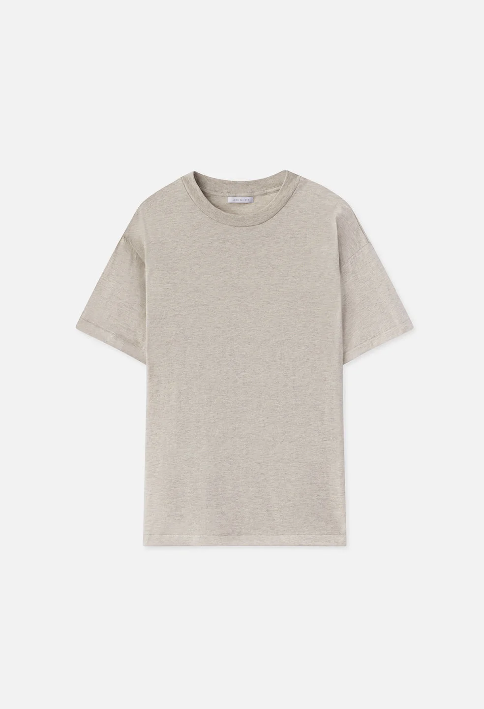 Relaxed fit tee designed with a lightweight cotton-cashmere blend for soft and breathable fabric. Features a vintage-inspired blind stitch detail at the neck, sleeves, and hem. Ribbed neck. Made in Los Angeles. 90% Cotton / 10% Cashmere. FABRIC & FIT Fits true to size, take your normal size.Model is 6'2" 160 lbs and wears a size 2 / Medium. CARE GUIDE Dry Clean Only