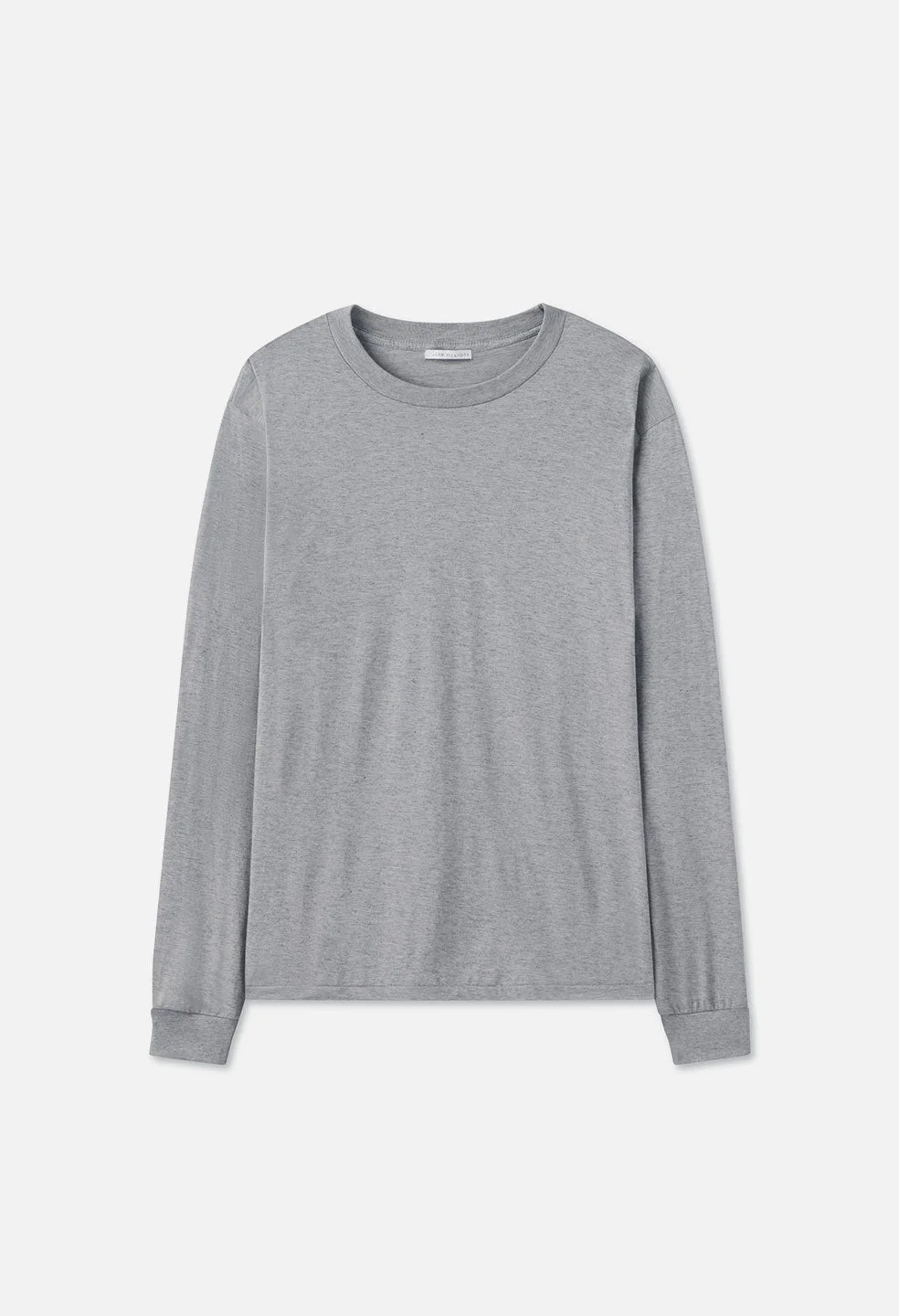 Relaxed fit long sleeve pullover tee. Designed with a lightweight cotton-cashmere blend for soft and breathable fabric. Features a vintage-inspired blind stitch detail at the neck, sleeves, and hem. Ribbed neck and cuffs. Made in Los Angeles. 90% Cotton / 10% Cashmere. FABRIC & FIT Fits true to size, take your normal size. Model is 6'2" 160 lbs and wears a size 2 / Medium. CARE GUIDE Dry clean only.