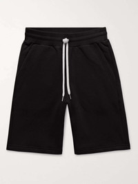 John Elliott excels at creating wardrobe building blocks like these drawstring sweat shorts. They're made from loopback cotton-jersey with a bit of natural stretch to help keep their shape over time. Shown here with: Reese Cooper® Hoodie, BILLY T-shirt, Rhude Sneakers. Size & Fit - Fits true to size. Take your normal size - The model is wearing a size larger than his normal size to achieve a looser fit - Straight leg, low-crotch style - These shorts are adjustable at the waist - Mid-weight, stretchy fabric - Model wears a M - Model measures: waist size 30, height 6'1"/ 185cm Details & Care - Black loopback cotton-jersey - Elasticated drawstring waistband, two front slash pockets, back patch pocket - 100% cotton - Machine wash