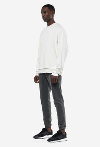 Relaxed fit sweatpants that taper to an elasticated cuff at the ankle. Super heavyweight 26 oz. terry with a soft fleeced backside. Elastic waist with tonal drawstring closure, two pockets at the front, and one patch pocket at the right back. Made in Los Angeles. The Replica Collection is informed by John's early days in San Francisco. During his time on Haight Street, vintage references were accumulated that would become foundational blocks for our brand. Replica Fleece is our version of heavyweight sweats circa the 1970's. These garments feature a clean face that's washed out, and are something we feel is an important pillar for anyone's wardrobe. 100% Cotton FABRIC & FIT Fits true to size, take your normal size. Model is 6'2" 160 lbs with a 30" waist and wears a size 2 / Medium. CARE GUIDE Machine wash cold, gentle cycle. Hang to dry.
