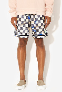 Relaxed fit mesh basketball shorts in a custom 'Union Square' print. Two pocket styling with a ribbed drawstring waist and knit striped trim with vented cuffs. Fully lined.100% Polyester FABRIC & FIT Fits true to size, take your normal size.Model is 6'2" 160 lbs and wears a size 2 / Medium. CARE GUIDE Machine Wash Cold, Wash With Like Colors, Do Not Bleach, Do Not Iron, Do Not Tumble Dry