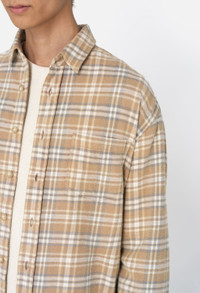 This classic Hemi Shirt has a relaxed fit with a raw hem, button placket, chest pocket, barrel cuffs, and a point collar. Designed in custom-woven "Aspen Check," each piece goes through a proprietary wash process and hand-brushed finish. The result is supremely soft fabrication with a uniquely faded, vintage appearance. Made in Japan. 100% Cotton. FABRIC & FIT Fits true to size, take your normal size.Model is 6'2" 160 lbs and wears a size 2 / Medium. CARE GUIDE Machine Wash Cold, Wash With Like Colors, Do Not Bleach, Do Not Iron, Do Not Tumble Dry.