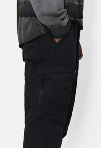 Relaxed fit cargo pants crafted from proprietary High Shrunk Nylon, which was developed in Japan for a durable and lightweight finish. The nylon taffeta is contrasted with heavyweight, matte Cordura canvas paneling. The resulting fabric development is water-repellent, complete with utility pockets and waterproof zippers. Seven pocket styling with two slant pockets at the front, one zippered pocket the seat, and dual use cargo pockets with a concealed opening, and zippered pockets. These pants feature knee pleats as well as an adjustable waistband and cinch cord at the hem for a versatile fit. Fully lined mesh interior. Aquaguard YKK Japan hardware. Tonal stitching. Self: 100% Nylon. Lining: 100% Polyester. FABRIC & FIT This item runs large, take one size down from your normal size. Model is 6'2" 160 lbs with a 30" waist and wears a size 2 / Medium. CARE GUIDE Machine wash cold, gentle cycle. Hang to dry.