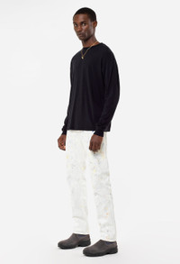Relaxed fit long sleeve pullover tee. Designed with a lightweight cotton-cashmere blend for soft and breathable fabric. Features a vintage-inspired blind stitch detail at the neck, sleeves, and hem. Ribbed neck and cuffs. Made in Los Angeles. 90% Cotton / 10% Cashmere. FABRIC & FIT Fits true to size, take your normal size. Model is 6'2" 160 lbs and wears a size 2 / Medium. CARE GUIDE Dry clean only.