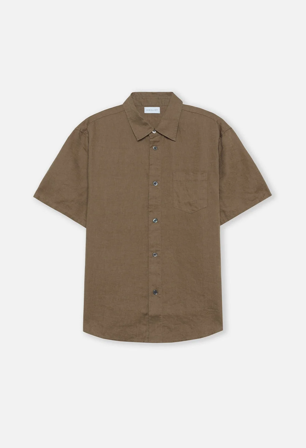 Button up short sleeve shirt in lightweight and airy linen fabric. Features a curved hem, button placket, chest pocket, barrel cuffs, and a point collar. 100% Linen. This shirt has an updated fit that's less oversized as compared to previous Cloak models. It fits true to size. FABRIC & FIT This shirt has an updated fit that's less oversized as compared to previous Cloak models. It fits true to size. Model is 6'2" 160 lbs and wears a size 2 / Medium. CARE GUIDE Hand Wash Cold With Like Colors / Do Not Bleach / Cool Iron If Needed Use Press Cloth / Hang To Dry