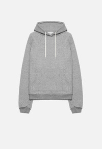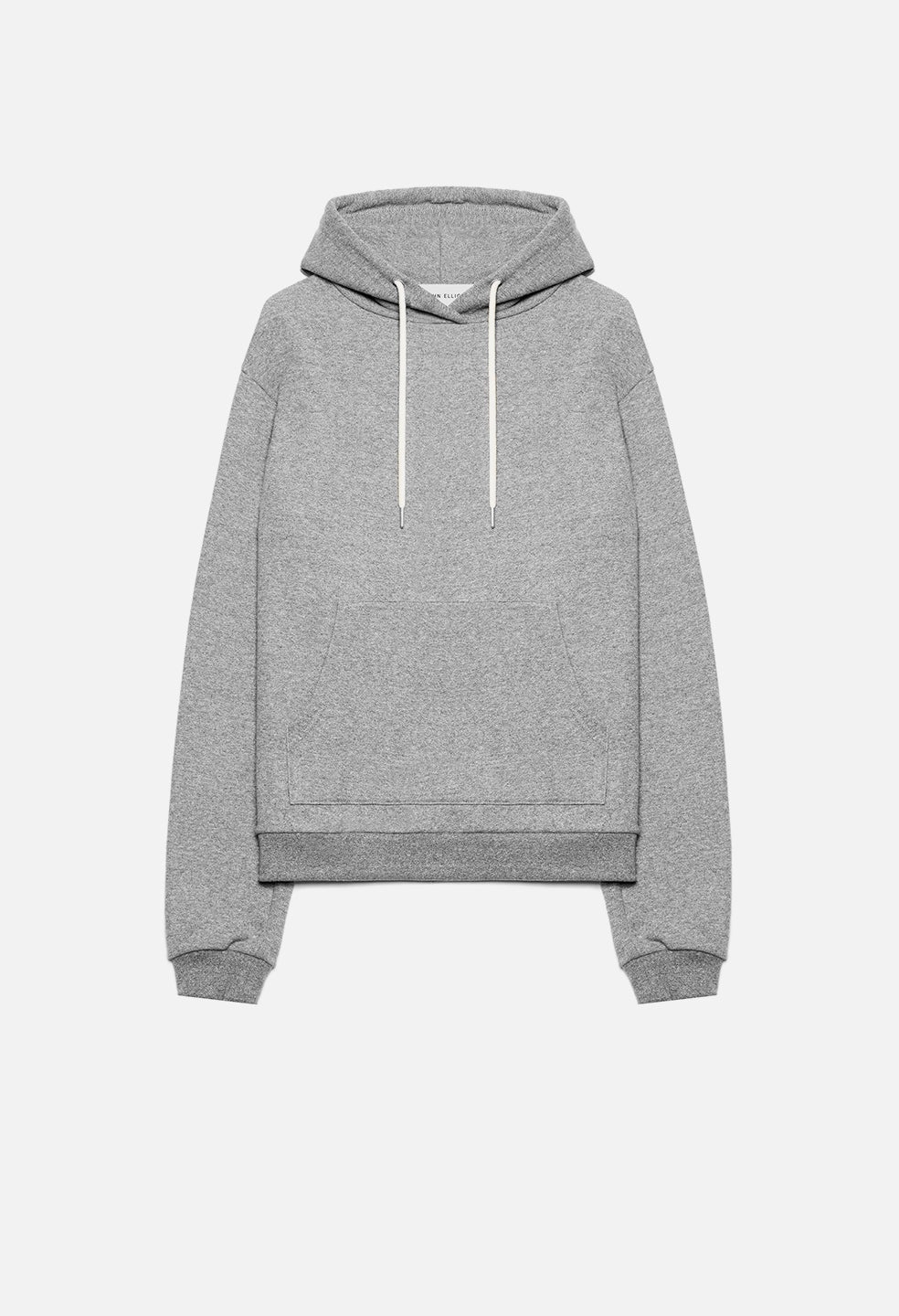 Relaxed fit hoodie with a dropped shoulder fit in custom knit French terry. Kangaroo pockets at the waist, drawstring closure at the hood. Rib knit waist and cuffs. Made in Los Angeles. 100% Cotton. FABRIC & FIT Fits true to size, take your normal size. Model is 6'2" 160 lbs and wears a size 2 / Medium. CARE GUIDE Machine wash cold, gentle cycle. Hang to dry.