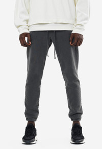 Relaxed fit sweatpants that taper to an elasticated cuff at the ankle. Super heavyweight 26 oz. terry with a soft fleeced backside. Elastic waist with tonal drawstring closure, two pockets at the front, and one patch pocket at the right back. Made in Los Angeles. The Replica Collection is informed by John's early days in San Francisco. During his time on Haight Street, vintage references were accumulated that would become foundational blocks for our brand. Replica Fleece is our version of heavyweight sweats circa the 1970's. These garments feature a clean face that's washed out, and are something we feel is an important pillar for anyone's wardrobe. 100% Cotton FABRIC & FIT Fits true to size, take your normal size. Model is 6'2" 160 lbs with a 30" waist and wears a size 2 / Medium. CARE GUIDE Machine wash cold, gentle cycle. Hang to dry.