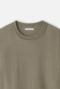 Boxy, cropped fit tee with dropped shoulders. Designed with recycled cotton. Ribbed neck. Reversed inside-out stitch details through. Reactive dye treatment for deep, solid coloration. Made in Los Angeles. 100% Cotton. FABRIC & FIT Fits true to size, take your normal size.Model is 6'1" 160 lbs and wears a size 2 / Medium. CARE GUIDE Machine Wash Cold, Wash With Like Colors, Do Not Bleach, Do Not Iron, Do Not Tumble Dry.