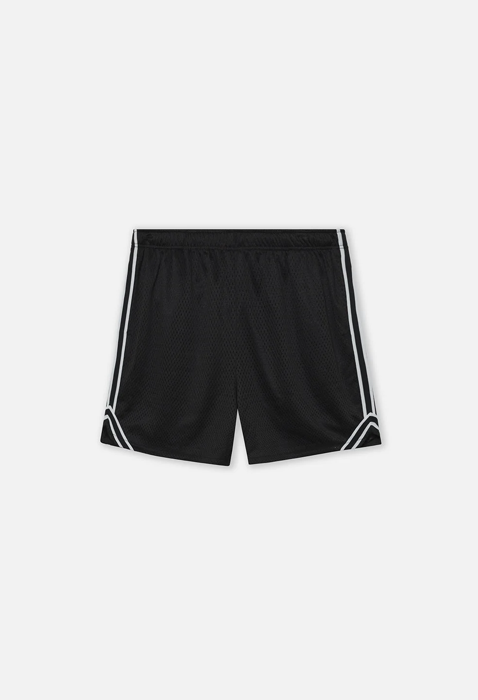 Hoops-inspired mesh shorts in a relaxed and slightly cropped fit. Custom 'Black' print. Two pocket styling with a ribbed drawstring waist and double taped side trim with vented cuffs. Fully lined. 100% Poly. This style has been updated to a slightly longer length, sitting between 'Practice Short' and 'Game Short' silhouettes. FABRIC & FIT This style has been updated to a slightly longer length, sitting between 'Practice Short' and 'Game Short' silhouettes. CARE GUIDE Machine Wash Cold, Wash With Like Colors, Do Not Bleach, Do Not Iron, Do Not Tumble Dry