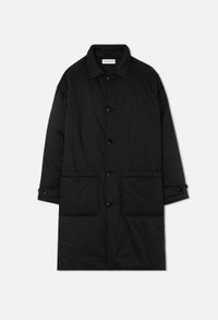 Overcoat with Thermolite lining for superior insulation. Relaxed, oversized fit. This style features a point collar, front button closure, patch pockets at the waist, adjustable button cuffs, and a fishtail hem. Scout is constructed with Japanese cotton poplin fabric that's been treated with a unique process, giving the garment a crisp structured finish. 100% Cotton. FABRIC & FIT This item is intended to fit large to size for a relaxed, oversized fit. If you prefer a slimmer fit, we recommend to size down. Model is 6'2" 160 lbs and wears a size 2 / Medium. CARE GUIDE Dry Clean Only