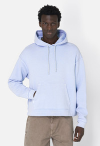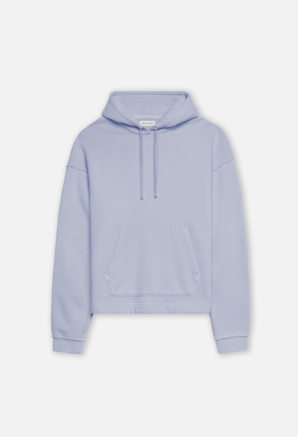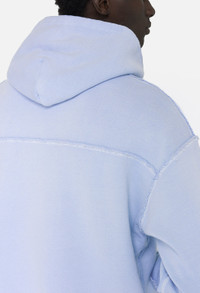 Relaxed fit, drop shoulder hoodie in custom-knit 'Skeptic' French terry. Cozy brushed fleece backside. Drawstring closure at the hood. Kangaroo pocket at the waist. Ribbed cuffs and hem. Raw edge contrast stitch at the sleeve seams. Washed finish with an all-over sun-faded look and feel. Made in Los Angeles. 100% Cotton. FABRIC & FIT Fits true to size, take your normal size.Model is 6'2" 160 lbs and wears a size 2 / Medium. CARE GUIDE Machine Wash Cold / Wash With Like Colors / Do Not Bleach / Do Not Iron / Do Not Tumble Dry