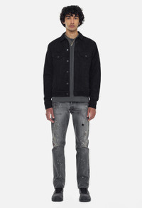 Classic type III trucker jacket crafted in premium European suede. Button closure with two pointed flap pockets, side pockets, and waistband tabs. Fully lined. Branded hardware. Tonal stitching. Made in Los Angeles. Our classic Thumper Jacket silhouette reaches cutting edge technology in suede construction. Organic hides are cut and sewn by leather artisans and natural wax is then applied at the seams by hand for a lived-in finish. Due to the special treatment on this garment, each piece is completely unique, with slight variance in finish. 100% Suede Leather. FABRIC & FIT Fits true to size, take your normal size. Model is 6'1" 160 lbs and wears a size 2 / Medium. CARE GUIDE Specialist clean.