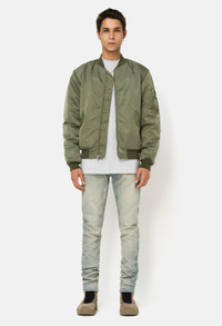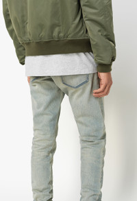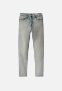 Japanese dry process 3x1 stretch denim in medium faded indigo. Slim tapered fit with a low rise in the front and higher rise in the back. 98% cotton 2% poly. Explore our Denim Wash Guide FABRIC & FIT This item is intended to fit slim. If you do not prefer a slim fit, we recommend sizing up one. Model is 6'2" 160 lbs with a 31" waist and wears a size 31. CARE GUIDE Machine wash cold, gentle cycle. Hang to dry. Dry clean optional.