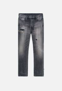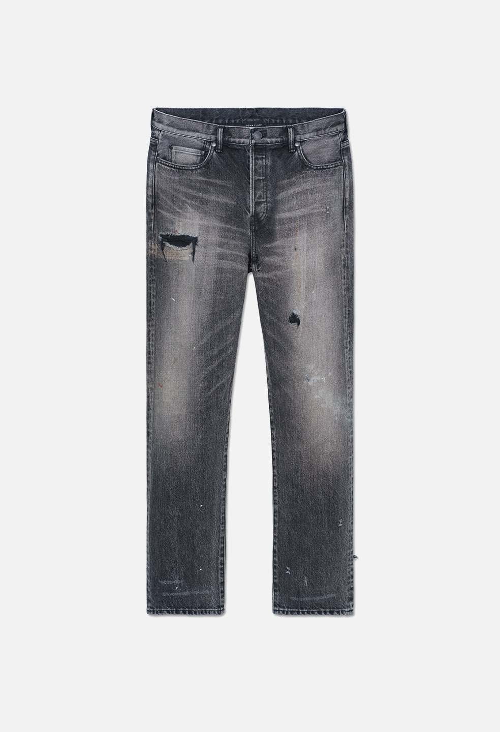 Japanese 3X1 denim in washed black. Authentic repairs and reinforcements at the right pocket and hems. Graphic and paint details throughout. Classic straight leg fit with a medium rise and slight taper from the knee. Five pocket design with a button fly. Tonal stitching. Made in Japan. 100% Cotton. 'Presidio' is a classic John Elliott Wash, having first debuted in Fall 2017 with our "Stretch the Floor" collection. This is the first time it has appeared in black and in 'The Daze' fit. FABRIC & FIT Fits true to size, take your normal size.Model is 6'2" 160 lbs with a 31" waist and wears a size 31. CARE GUIDE Machine Wash Cold, Wash With Like Colors, Do Not Bleach, Do Not Iron, Do Not Tumble Dry.