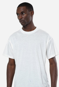 Relaxed fit tee designed with a lightweight cotton-cashmere blend for soft and breathable fabric. Features a vintage-inspired blind stitch detail at the neck, sleeves, and hem. Ribbed neck. Made in Los Angeles. 90% Cotton / 10% Cashmere. FABRIC & FIT Fits true to size, take your normal size. Model is 6'2" 160 lbs and wears a size 2 / Medium. CARE GUIDE Dry clean only.
