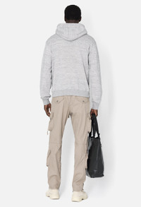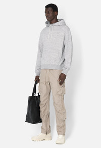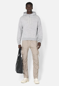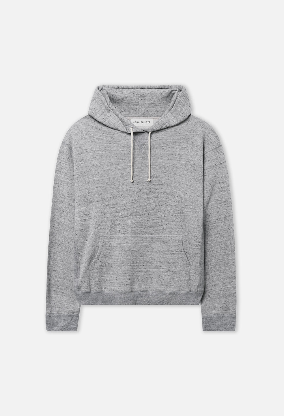 Relaxed fit hoodie in custom-knit 'Vintage Fleece' fabric. 'V-stitch' insert at the hood with a traditional cotton cord drawstring. Kangaroo pocket at the waist. Ribbed cuffs and hem. Gusset-ribbed sides. Inside-out flatlock stitch details. Made in Los Angeles. Vintage fleece draws inspiration from 1970s-era garments. This color achieves its unique melange face through Japanese fabric in 100% cotton fabrication, complemented by a fleeced back that offers a uniquely soft texture and substantial feel. 100% Cotton. Ship Date 3/1 FABRIC & FIT This garment fits true to size for the intended cropped fit. Please check our size guides for more details. Model is 6'2" 160 lbs and wears a size 2 / Medium. CARE GUIDE Machine Wash Cold / Wash With Like Colors / Do Not Bleach / Do Not Iron / Do Not Tumble Dry