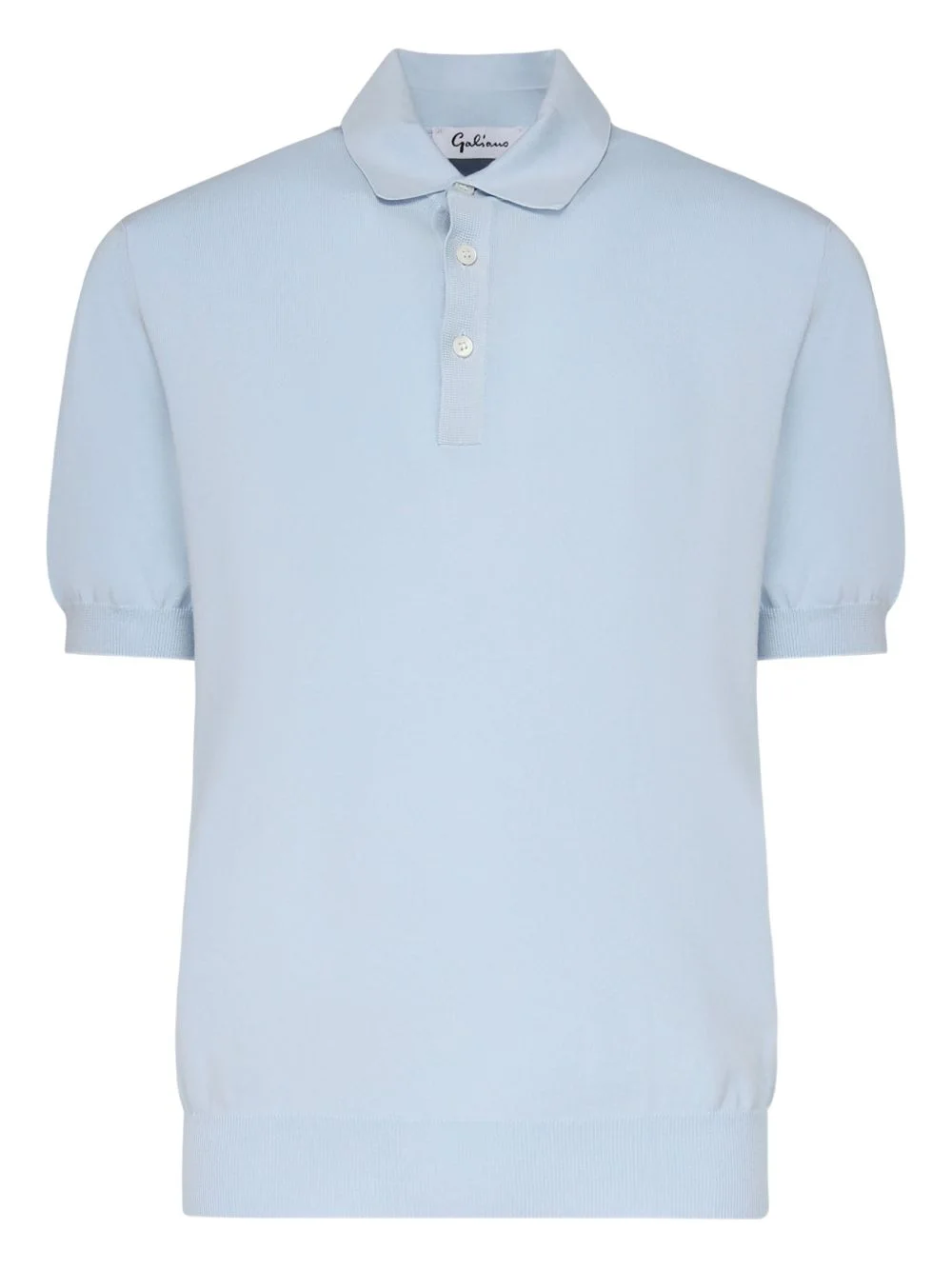 short-sleeved polo shirt Highlights - Light blue - Cotton - Front button placket - Short sleeves - Ribbed hem - Polo collar Made in Italy Composition Cotton 100% Washing instructions Read Manufacturer Guidelines