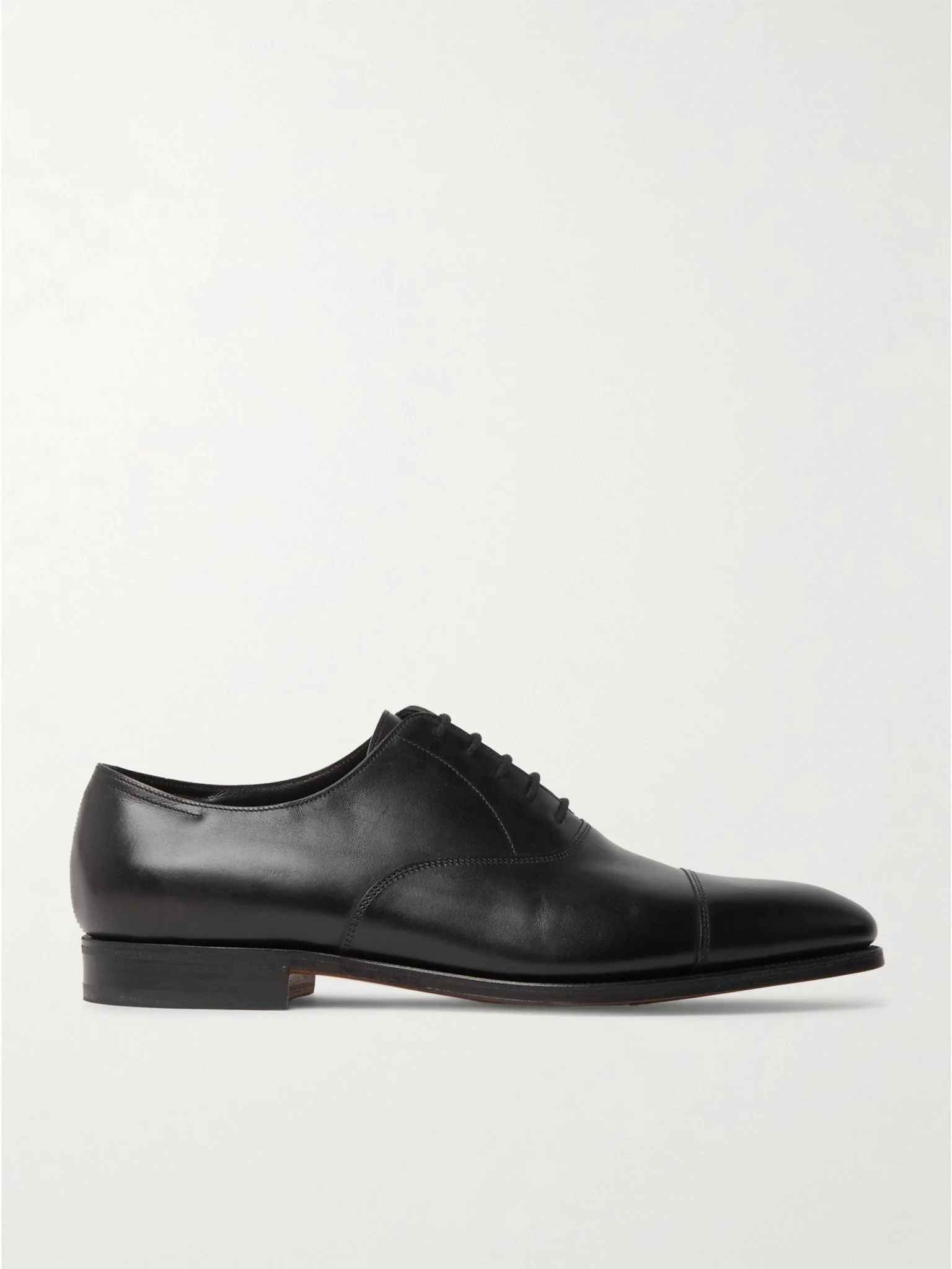 With leather soles and sleek double-stitched cap toe, the elegant profile of John Lobb's oxford shoes will make the perfect foundation to formal looks. Wear them to complement a sleek two-piece suit, ensuring they are highly polished at all times. Shown here with: [Richard James Suit id653300], [Emma Willis Shirt id422612], [Gieves & Hawkes Tie id633389], [Lanvin Pocket square id636964], [Dunhill Cufflinks id539106]. Size & Fit - Fits true to size. Take your normal size - Medium width = UK E / US D - UK sizing Details & Care - Black leather - Double-stitched cap toe, leather lining and soles