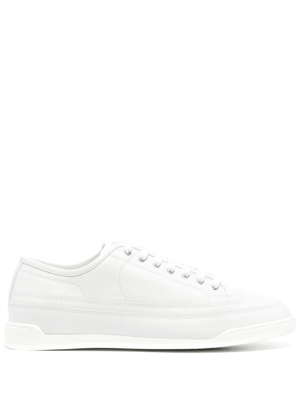 Courrt leather sneakers Highlights - Light grey/white - Calf leather - Smooth grain - Decorative stitching - Panelled design - Logo at the sole - Round toe - Front lace-up fastening - Branded leather insole - Flat rubber sole Made in Italy Composition Lining: Calf Leather 100% Outer: Calf Leather 100% Sole: Rubber 100% SIZE & FIT Measurement HEEL 0.78 in(2 cm) Sole height 0.39 in(1 cm)