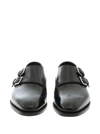 double-buckle leather derby shoes Highlights - Black - Leather - Double buckle fastening - Almond toe - Rubber outsole Made in United Kingdom Composition Outer: Calf Leather 100% Sole: Rubber 100% Lining: Calf Leather 100%