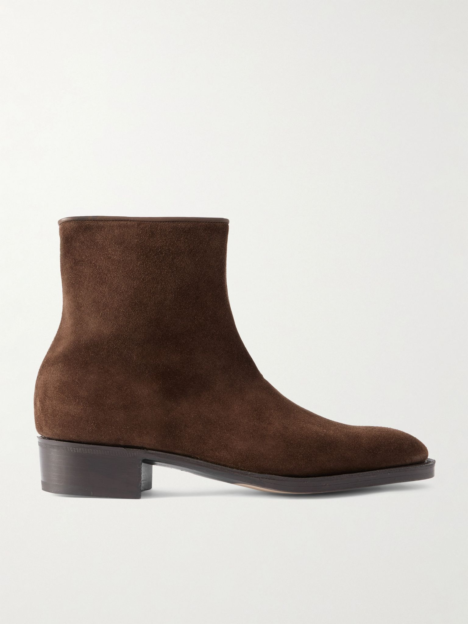 John Lobb's 'Freddi' boots are a throwback to 1970s styles. They're made from suede assembled on a traditional last and have sleek almond toes and stacked leather heels. The concealed zips mean they're easy to get on and off. Size & Fit - Fits true to size. Take your normal size - UK sizing Details & Care - Brown suede (Calf) - Zip fastening