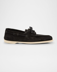 - John Lobb "Foil" boat shoes in suede - Glove construction - Features a flexible rubber sole for comfort and flexibility - 0.17 in / 5 mm flat heel - Round moc toe - 360-degree lace-up vamp - Leather lining - Rubber outsole - Made in United Kingdom
