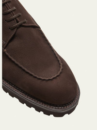 John Lobb "Land" derby shoes in nubuck calf leather Chunky heel Round apron toe Lace-up vamp Leather lining Rubber lug sole Made in United Kingdom Online Inquiries: BGS21_NBNYW| Store Inquiries: #4682938