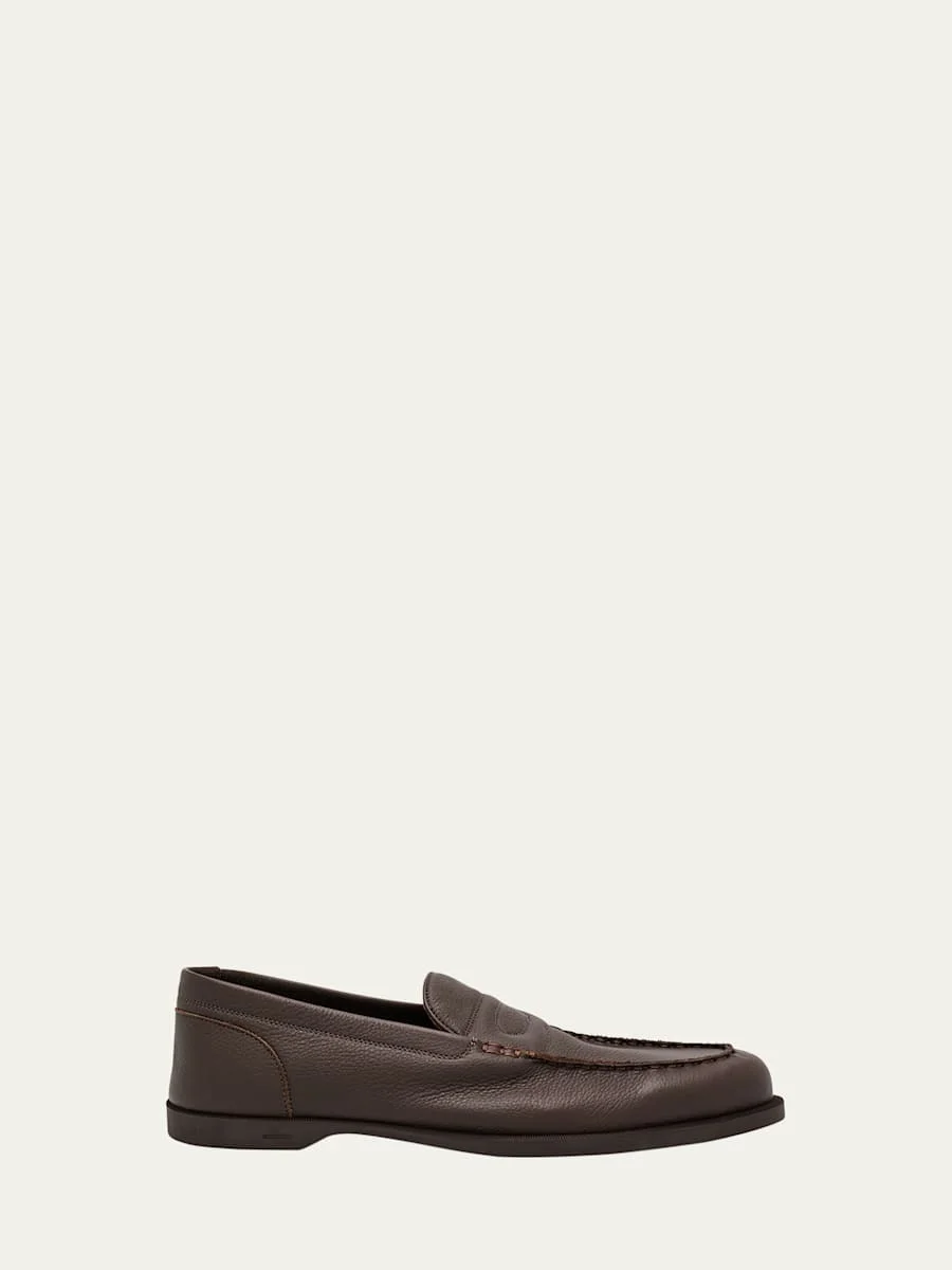 John Lobb "Pace" penny loafers in soft-grained leather 0.50 in / 15 mm stacked heel Round moc toe Penny keeper stitching Leather lining Slip-on style Made in United Kingdom Online Inquiries: BGS21_NCDCF| Store Inquiries: #4861195