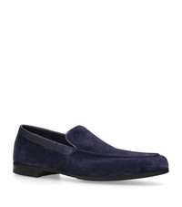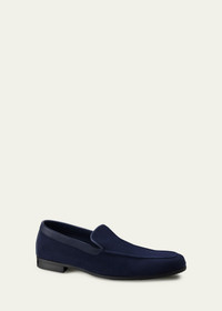 John Lobb "Tyne" loafers in supple suede with leather trim Stacked heel Round toe Notched vamp Slip-on style Leather lining Made in Italy Online Inquiries: BGS21_N8YYH| Store Inquiries: #4250142