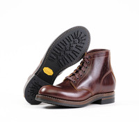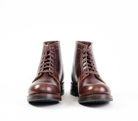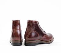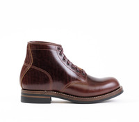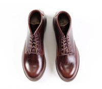 John Lofgren's 120 last runs large, we recommend sizing down one full size from your standard sneaker or brannock size. The John Lofgren Bootmaker Ludlow boots were inspired by United States Navy officer Augustus Ludlow. Ludlow street in NYC, famous for its art and music scene is named after him. The renowned barber shop Ludlow & Blunt also uses his name. It was to Lieutenant Ludlow that Captain Lawrence on the USS Chesapeake during the ship's fight with HMS Shannon the immortal words, "Don't give up the ship" were spoken. We're confident Lieutenant Ludlow and the Quartermaster Board would approve of his namesake being used on these boots. Like all JLB footwear, the uppers are beautifully executed by a master Japanese craftsman that has been sewing their uppers from the very beginning. And of course, all JLB footwear is completely built in Japan using parts manufactured only in the USA, Japan, England, France, Germany and Italy. JLB is a brand that you can actually be proud to wear. The horsebutt leather was developed by Shinki Hikaku tannery in Japan. This company specializes in horsehide leather tanning and is considered one of the best, if not the best, tanneries in the world. The horsebutt will feel a bit stiff in the beginning but soon will relax and form around your foot. The leather is visually stunning with always an interesting grain to admire. - Lot No. LK-031 - Shinki Hikaku horsebutt uppers - Goodyear welted construction using USA made flat welts - Heavy single, double and triple stitched sewing - 1.5" stacked heel, 6" shaft - Japanese made steel shanks - Made in USA Vibram #430 soles and heels - Embossed padded leather heel pad - E/Wide width - Built on the John Lofgren 120 last - Includes Japanese made John Lofgren Bootmaker box and dust bags
