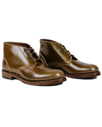 As you may be aware we love our Chukka boots. 3 hole, 4 hole, 6 hole, whatever, the minute we see one we just say to ourselves that's a beautiful looking half boot. Not too tall and not too short. Kind of like the baby bear. Just perfect. Since I wrote about the Cognac Shinki I couldn't leave out the Olive Shinki. Just replace everything Cognac with Olive and you get...an absolutely stunning pair of boots. DETAILS - 110 last - D/medium width - Lot No. LK-022 - Shinki Hikaku Shell Cordovan uppers with Japanese leather lining lined - Double & triple stitched sewing - Japanese made steel shanks - USA made Quabaug heels & Italian made Vibram half soles - Goodyear welted construction using USA made storm welts - Made in Japan