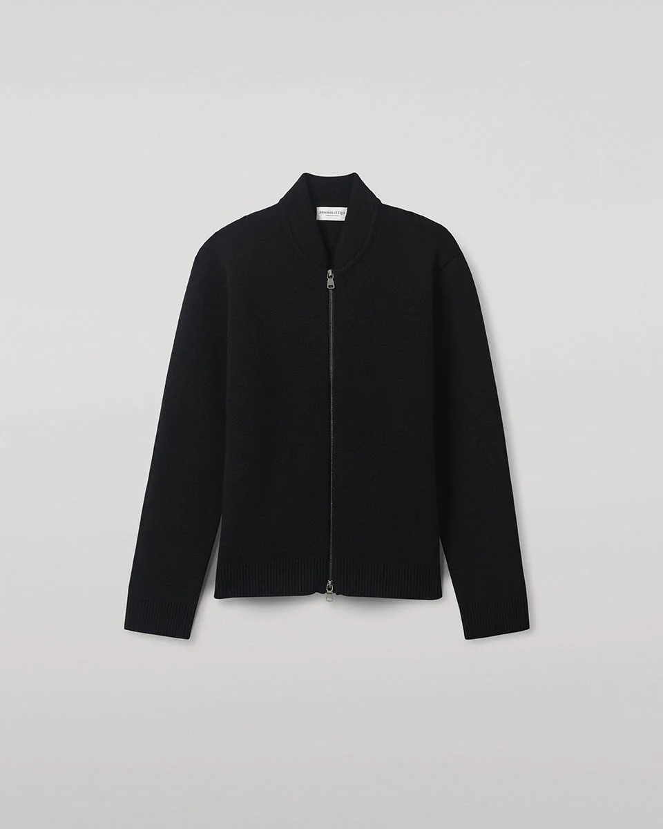 Soft saddle shoulders and a half-cardigan stitch give this design a casual yet elevated appeal. Finished with a double-ended zip. Milano stitch is a tightly constructed double-knit technique that produces a smooth, dense, and structured fabric. Unlike looser or more open knits, it offers exceptional shape retention, minimal stretch, and a clean, tailored finish—making it ideal for more formal or refined knitwear pieces. At Johnstons of Elgin, we use the Milano stitch to elevate our Cashmere styles, giving them a more polished appearance and a substantial feel, perfect for cooler seasons. PRODUCT DETAILS 100% Cashmere 4 Ply: Four individual strands are twisted to create this yarn, producing a durable, light-mid knit. Model is 6ft2 and wear a size M Made in Scotland Code: KAA05443