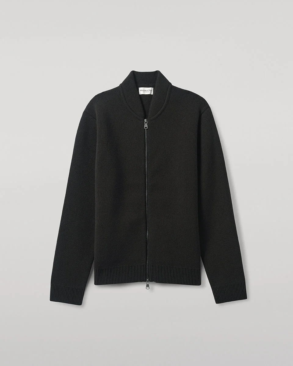 Soft saddle shoulders and a half-cardigan stitch give this design a casual yet elevated appeal. Finished with a double-ended zip. Milano stitch is a tightly constructed double-knit technique that produces a smooth, dense, and structured fabric. Unlike looser or more open knits, it offers exceptional shape retention, minimal stretch, and a clean, tailored finish—making it ideal for more formal or refined knitwear pieces. At Johnstons of Elgin, we use the Milano stitch to elevate our Cashmere styles, giving them a more polished appearance and a substantial feel, perfect for cooler seasons. PRODUCT DETAILS 100% Cashmere 4 Ply: Four individual strands are twisted to create this yarn, producing a durable, light-mid knit. Model is 6ft2 and wear a size M Made in Scotland Code: KAA05443