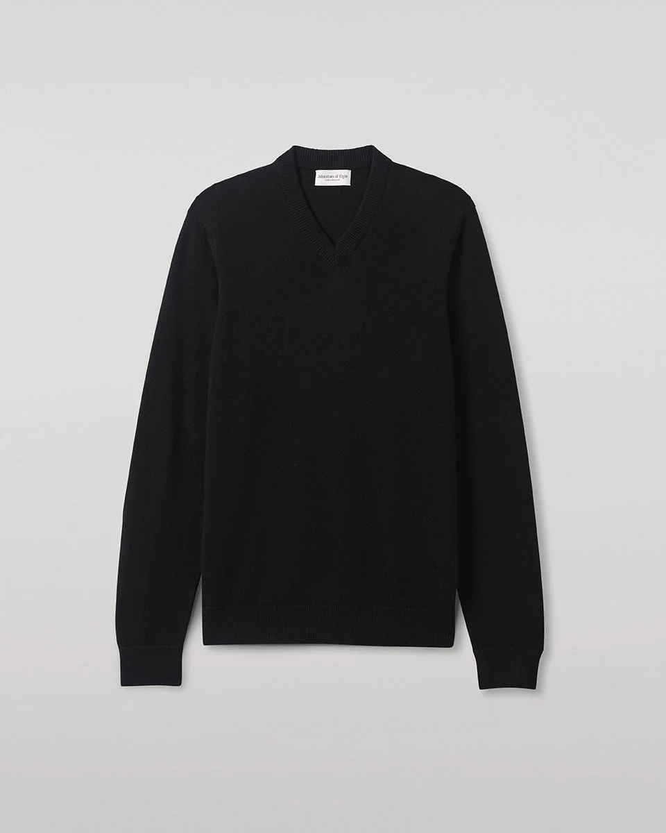This V neck is crafted in soft cashmere and hand-linked for a seamless finish. A timeless essential with understated stitch detail. PRODUCT DETAILS 100% Cashmere 2 Ply: Two individual strands are twisted to create this yarn, producing a durable, lightweight knit. Model is 6ft2 and wear a size M Relaxed Fit Made in Scotland Code: KAP05594