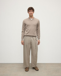 This V neck is crafted in soft cashmere and hand-linked for a seamless finish. A timeless essential with understated stitch detail. PRODUCT DETAILS 100% Cashmere 2 Ply: Two individual strands are twisted to create this yarn, producing a durable, lightweight knit. Model is 6ft2 and wear a size M Relaxed Fit Made in Scotland Code: KAP05594